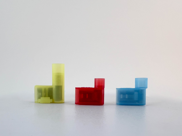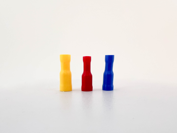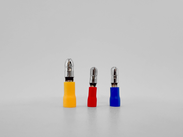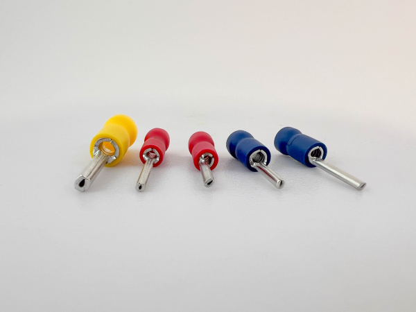 Terminal para conexão de fios em bornes e dispositivos elétricos, com formato pino que permite encaixe rápido e seguro.