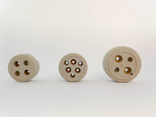 Tomada robusta para conexão de equipamentos com alto consumo de corrente elétrica, como máquinas e motores.